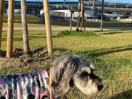 天気も良く、少し肌寒い感じが心地よく、朝の ルーティンに勤しむ れいパパ です いつものりんくう公園へお散歩〜 アタチの広〜い おトイレ でしゅ イヤイヤ、おトイレでは有りません! 芝生の公園ですw う○○も、ちゃんとお持ち帰りしますよ 本日も堤防…