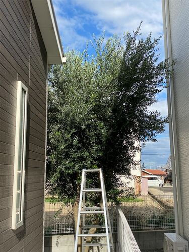 裏庭のオリーブの木が凄い事になってました 高さは雄に 3m越えw お隣の壁にも届いてしまいそうな状態 裏の畑にも領空侵犯しており、また切られてウチの裏庭に切った枝をほりこまれそうな状態w ってなわけで近隣に迷惑を掛けない様に脚立を立て、ノコでスッ…