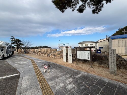 12/31 大晦日 車中泊した道の駅を朝から探索 この道の駅は大阪城の城壁の石を小豆島から積み出した記念公園です ここまで持ってきて積み出され無かったら石を「残念石」という?そうです 昔の工法で石を運んだ様子を再現してあります ソリの様なベースを横…